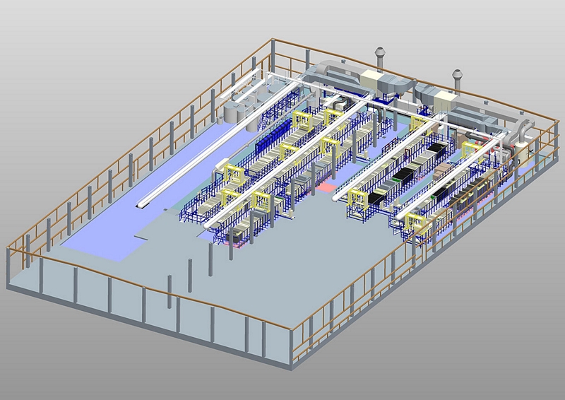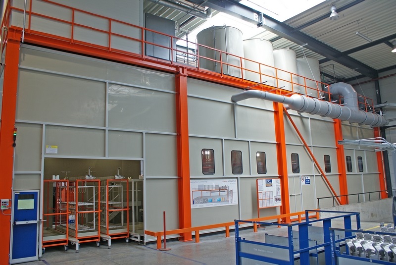 Wasch-Beiz-Automat zur Veredelung von Batteriewannen für Elektrofahrzeuge